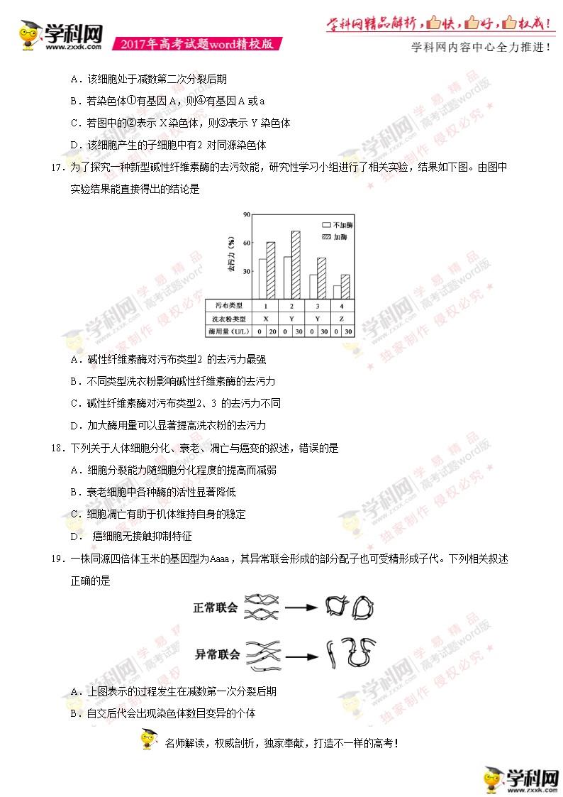2017年江蘇高考生物真題及答案(5)