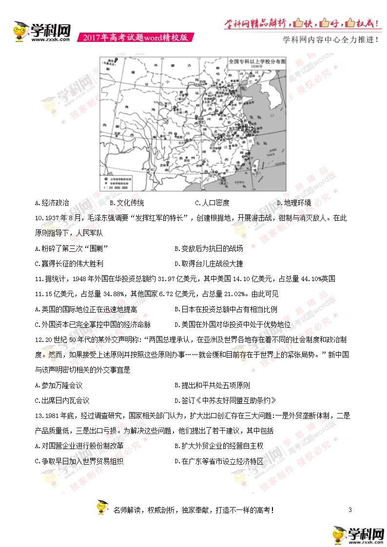 2017年江蘇高考?xì)v史真題及答案(3)