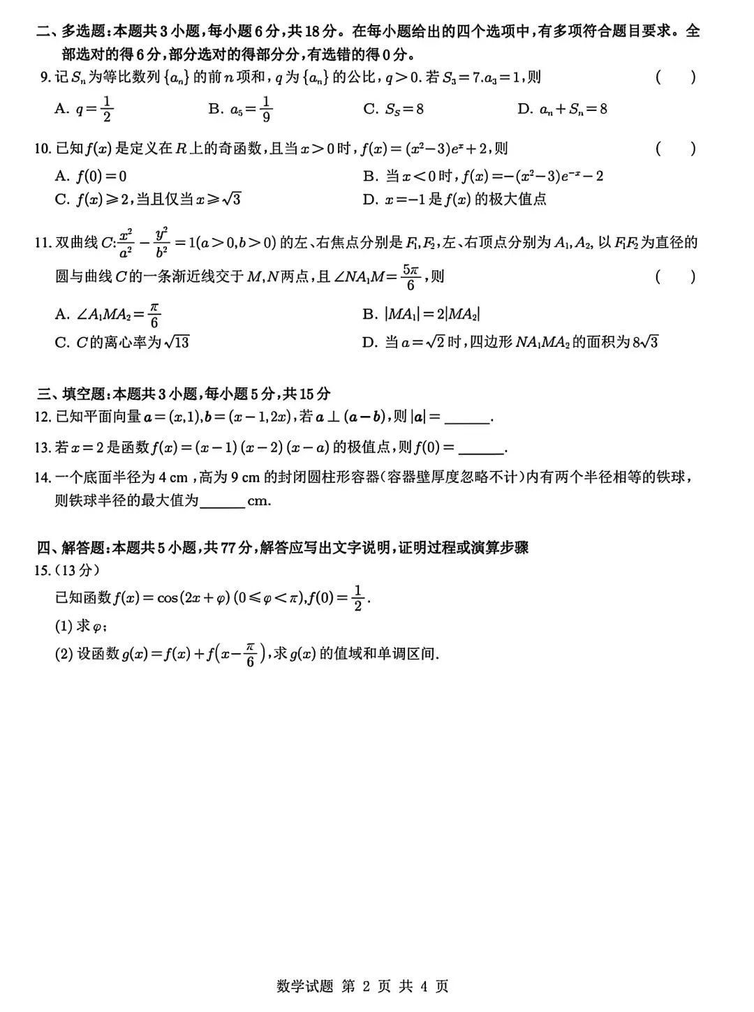 二、2025年黑龍江新高考二卷數學試卷真題及答案解析