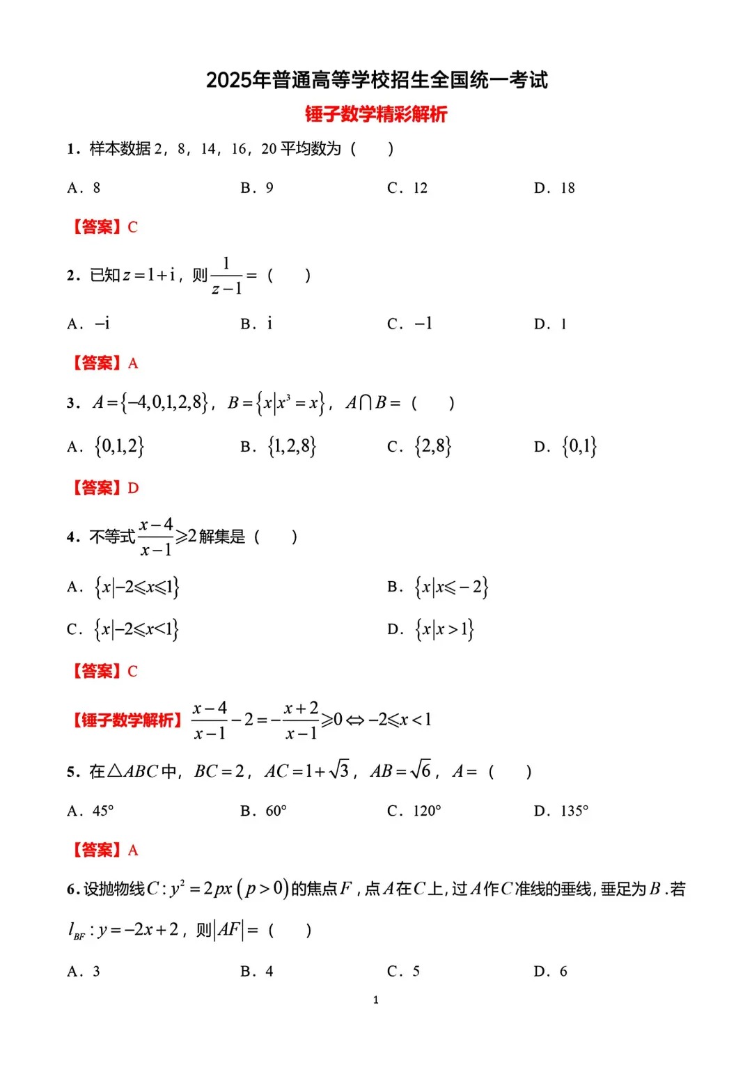 2025年全國高考試卷數學真題答案試卷