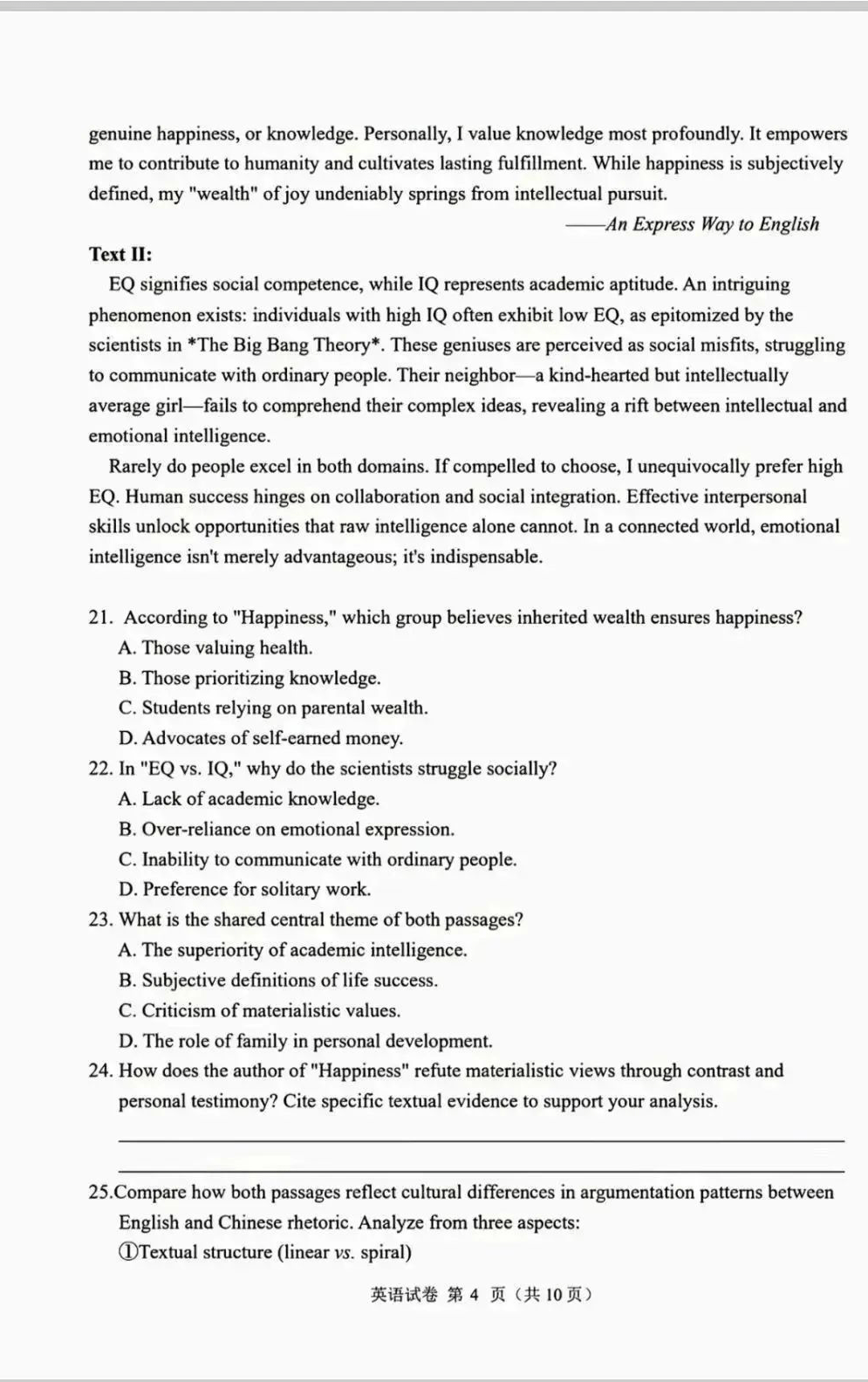 一、2025年全國高考試卷真題及答案
