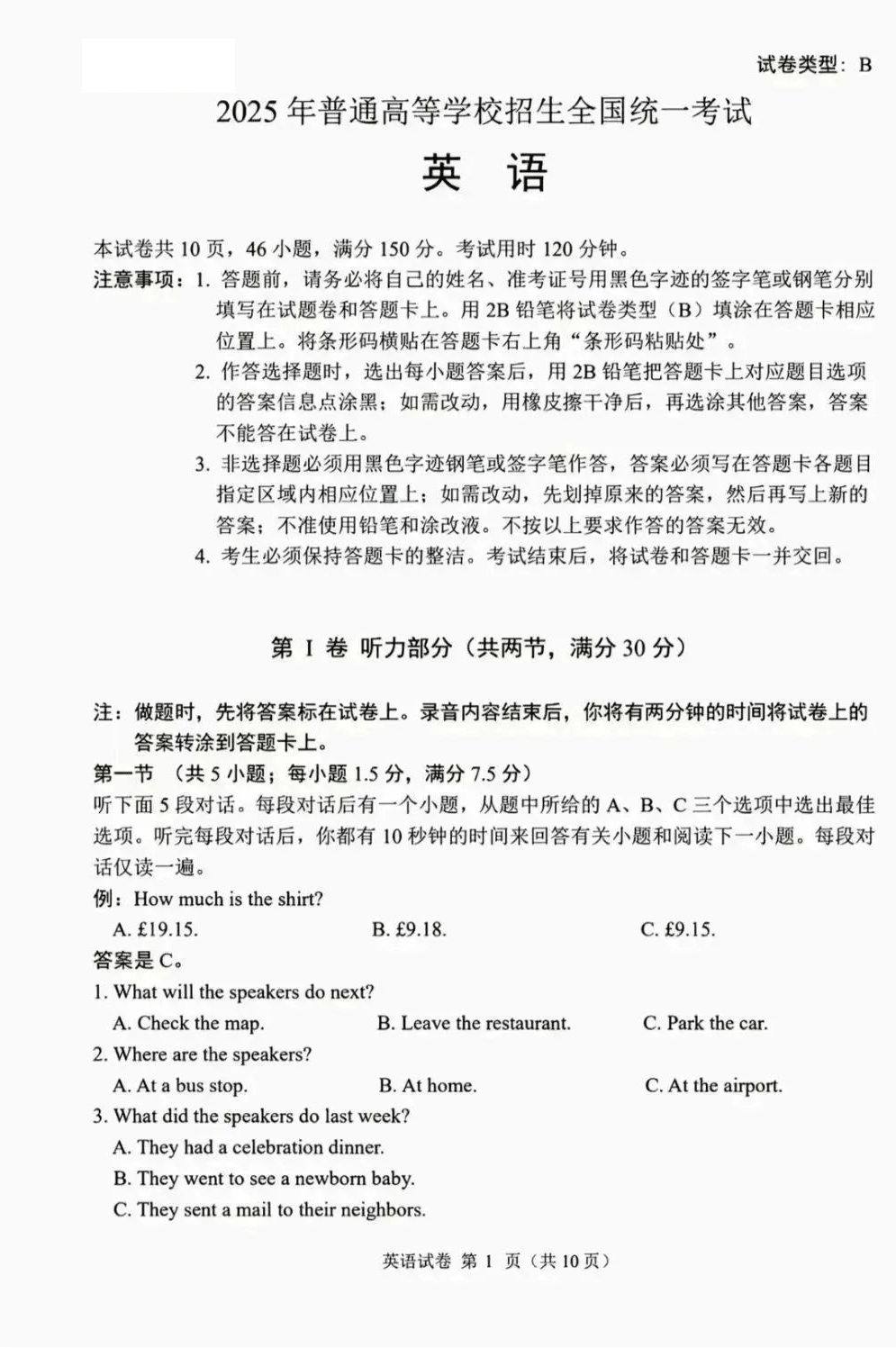 統一命題,所有省份共用新高考一卷外語試卷,試卷及答案如下: